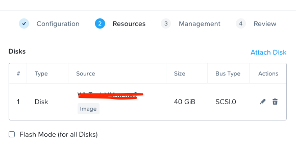 Then, navigate to the Resource Page under the Update VM Wizard, select the Disk need to be migrate to new Storage Container and Select Edit.