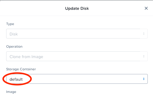 As you can see, I have the Default Storage Container however, I created a new Storage Container with more specific Storage Efficiency Policies for this particular VM so I will click the drop down arrow, look for my new Storage Container and select: