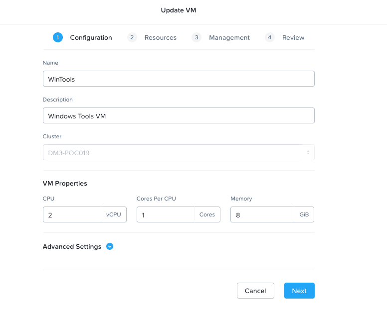 Hit Save and move on with Updating the Virtual Machine Wizard.
